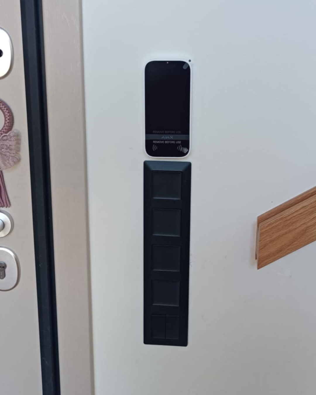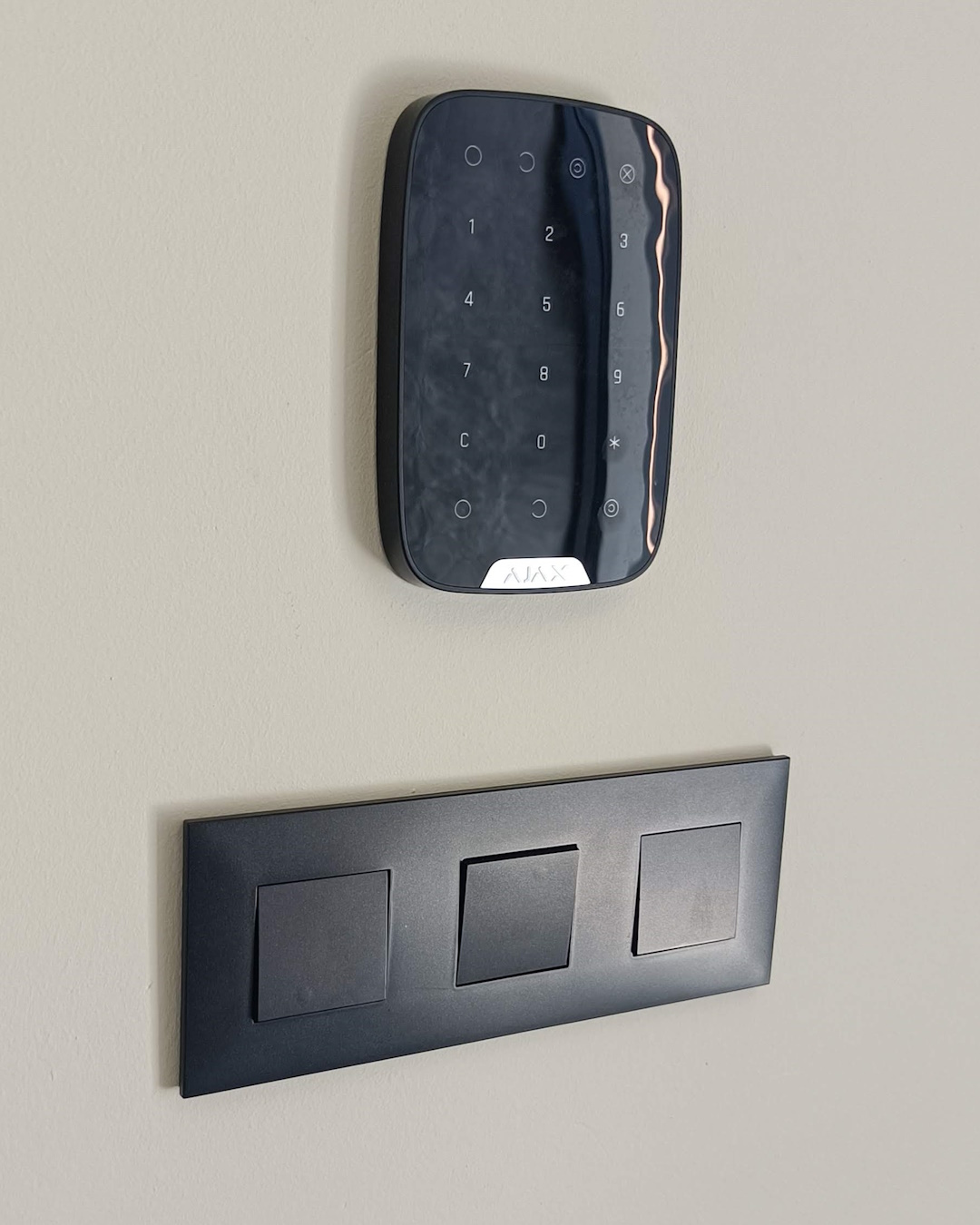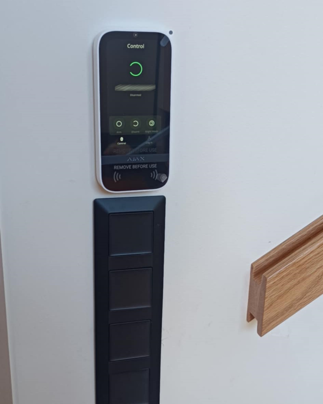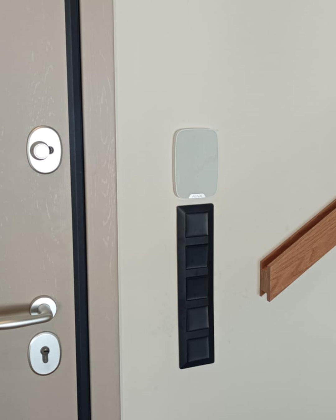 Επιλέξαμε Ajax Hub Plus σε συνδυασμό με Multitransmitter και, αφού ελέγχθηκε διεξοδικά η ορθή λειτουργία τους, τα προϋπάρχοντα περιφερειακά παρέμειναν. Επιπλέον ο πελάτης επέλεξε το πληκτρολόγιο TouchScreen που επιτρέπει την όπλιση και αφόπλιση, απλώς πλησιάζοντας το κινητό τηλέφωνο του χρήστη, ενώ απεικονίζει στην οθόνη του τις πλήρεις πληροφορίες για την κατάσταση λειτουργίας των διαφορετικών ομάδων χώρων.